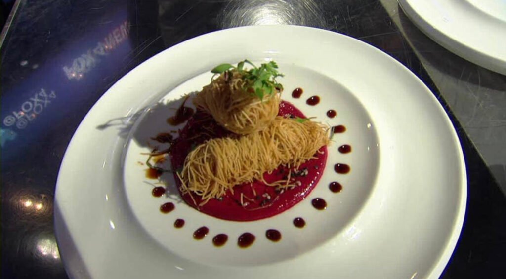 These are crispy fritters made from curd and cottage cheese, rolled in kataifi and served with a trio of purees.