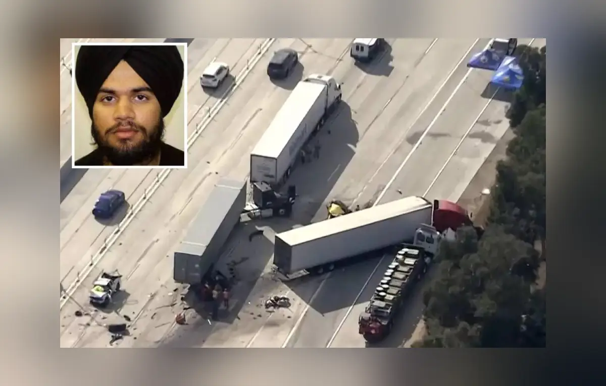 Police said Singh, behind the wheel of a Freightliner big rig, failed to brake before slamming into an SUV and eight other vehicles, including four commercial trucks. The impact engulfed multiple rigs in flames and scattered debris across the interstate.