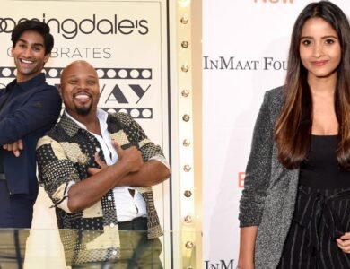 Indian American actor Michael Maliakel (l) and Michael James Scott attend the Opening Night at Bloomingdale’s 59th Street celebration of NYC event Sept. 9, 2021 in New York City, while Indian American actor Shoba Narayan (right) attends the annual Make