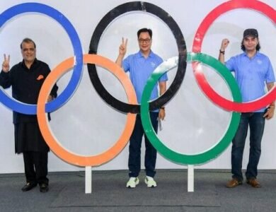 Narinder Batra, Kiren Rijiju, and Mohit Chauhan at the launch of India’s Olympic theme song. (photo via ANI) NEW DELHI — Ahead of the Tokyo Games, the official Olympic theme song for the India team was announced June 23. Mohit Chauhan