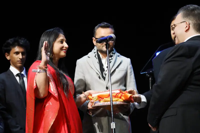 JERSEY CITY, NJ – Mamta Singh on January 15 was sworn in as Jersey City’s Councilwoman-at-Large, taking her oath of office on the Bhagavad Gita during a public inauguration ceremony held at New Jersey City University.