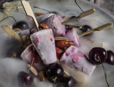 Ingredients . Fresh cherries, pitted 2 cups . Water 1/2 cup . Almond milk 4 cups . Condensed milk 1/2cup . Heavy cream 1/2cup . Sugar 1/2 cup . Almond meal 1/2 cup . Toasted almond flakes 1 tbsp Method: . Place cherries, water and 1/4 cup sugar in a