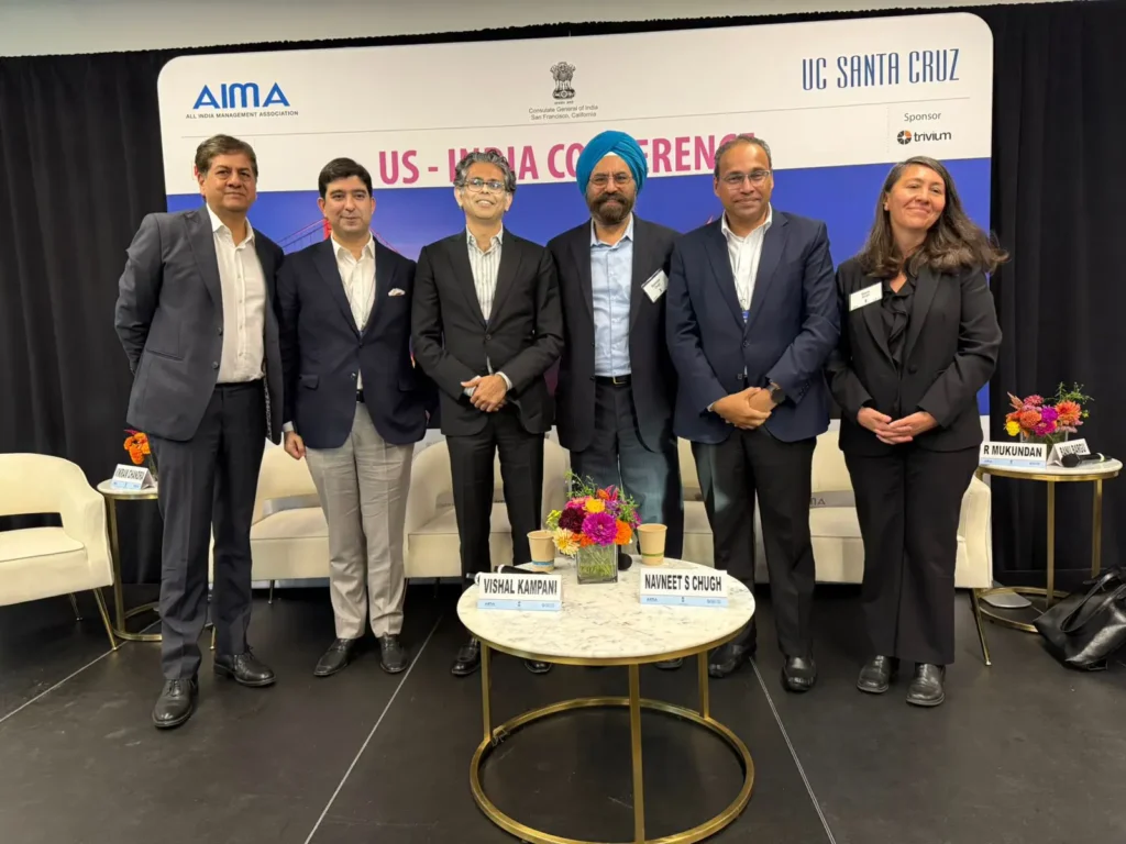 SANTA CLARA, CA — The 8th U.S.-India Conference, organized by the All India Management Association (AIMA), drew a packed audience to the University of California, Santa Cruz, Silicon Valley Campus on October 7. The theme — “U.S.-India: Normalization or Reset?” — reflected a timely question: Are the current trade frictions and tariff tensions a brief recalibration or signs of diverging priorities between the two democracies?