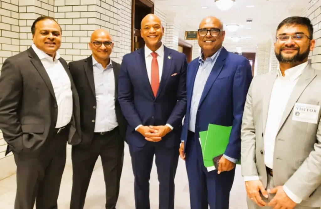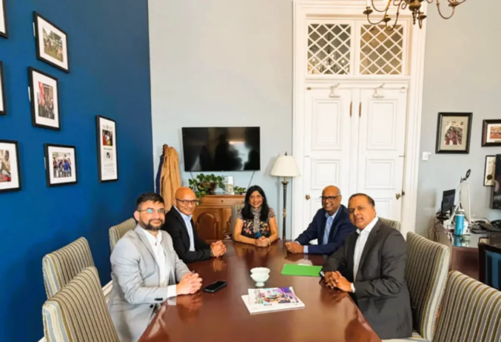 Conference Convener Sridhar Banala, Board of Trustees member Ram Mattapalli, and Co‑Coordinator Zeenath Kundoor joined the delegation.