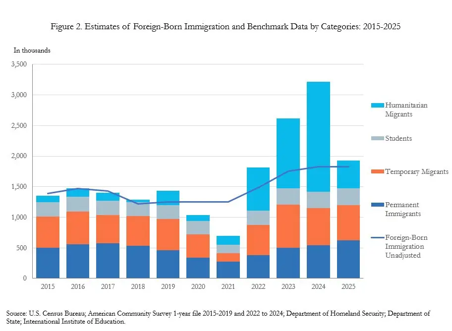 If current trends persist, the Census Bureau projects that immigration gains could fall to just over 320,000 people by mid 2026. The bureau’s estimates do not distinguish between legal and unauthorized immigration.